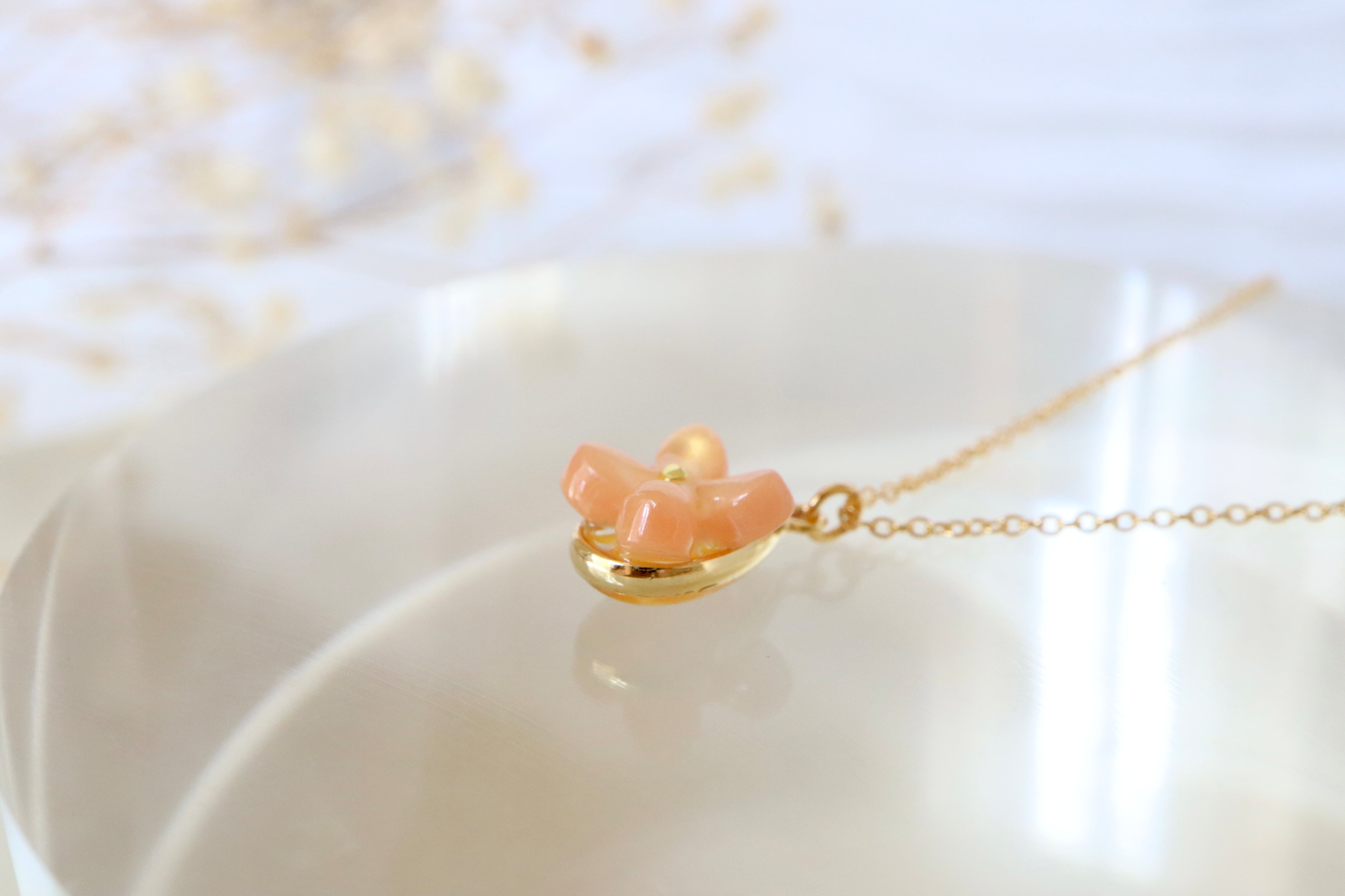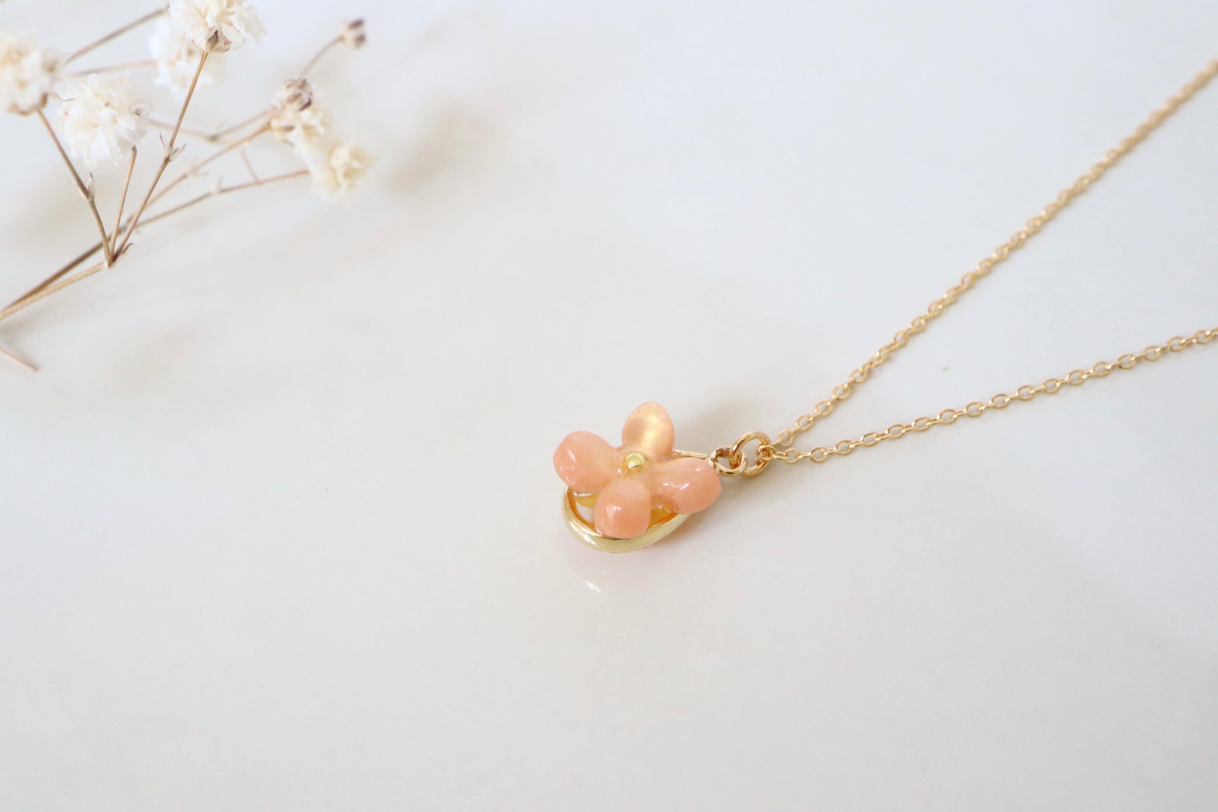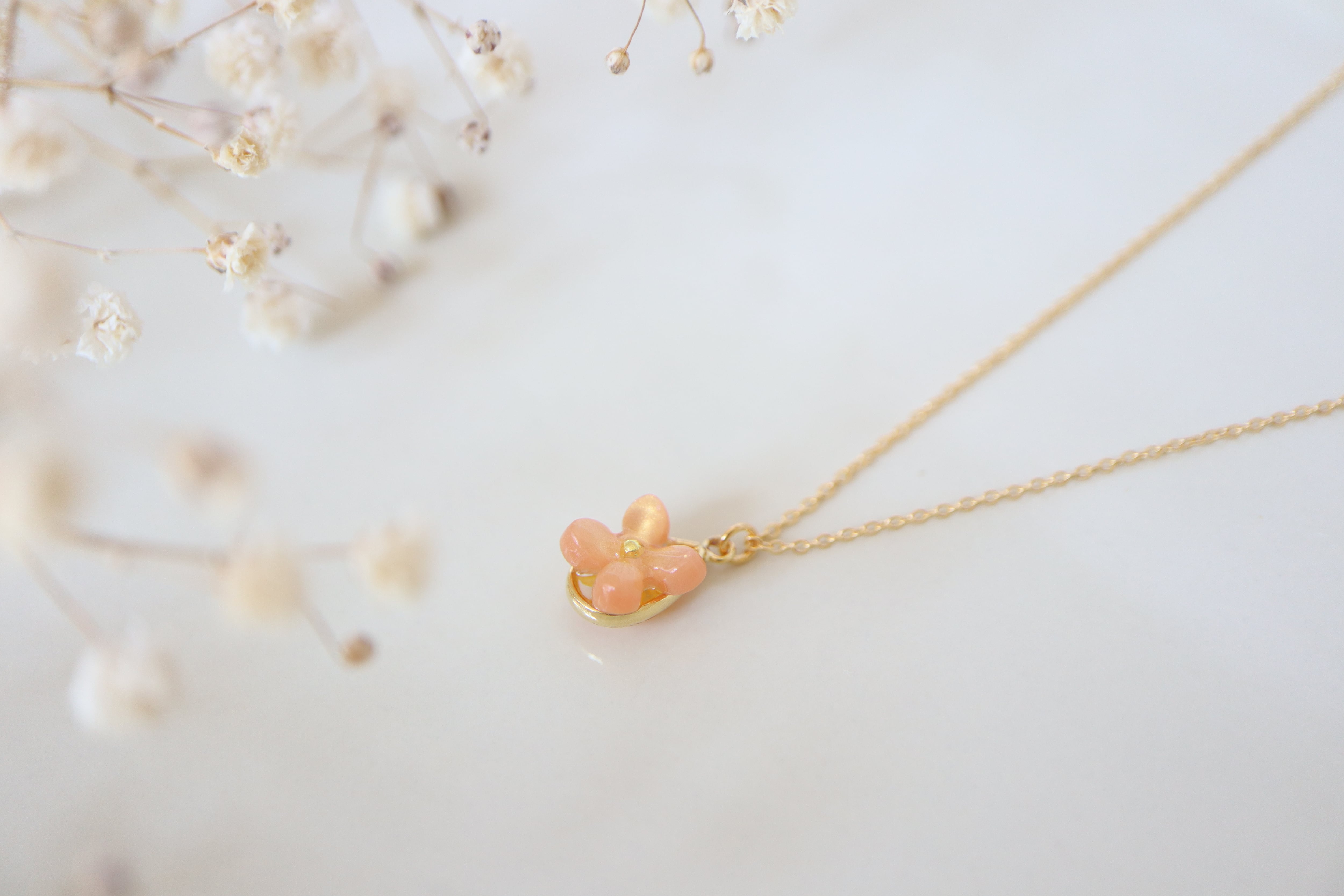 オレンジ色の小さな花が可憐に咲く「金木犀」をモチーフにしたネックレスです。