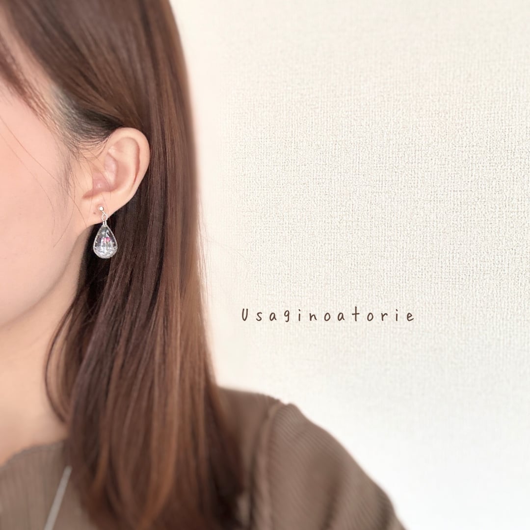 耳たぶ下でちょこんと雫が揺れる、シンプルなデザインに仕上げました.*