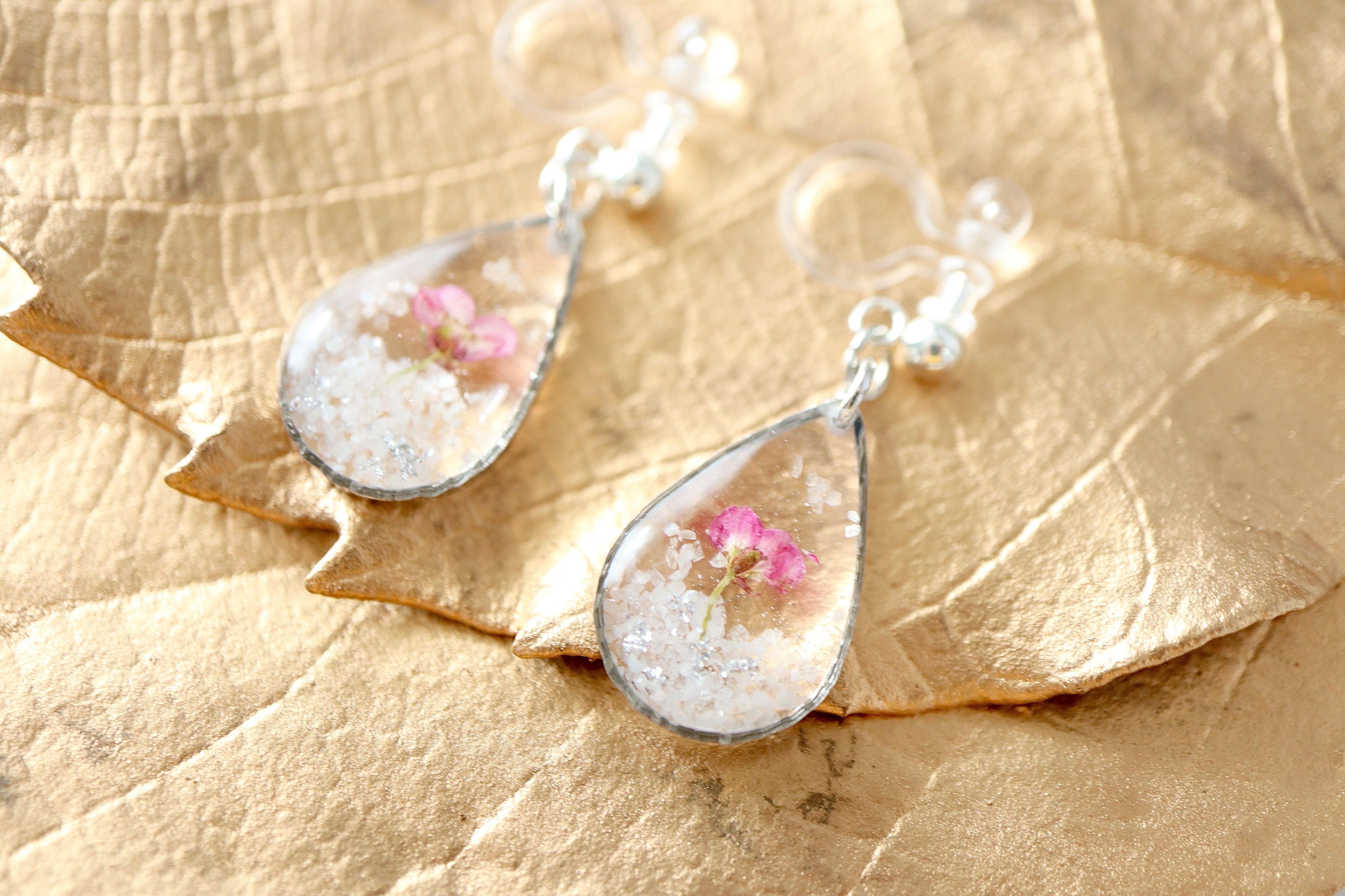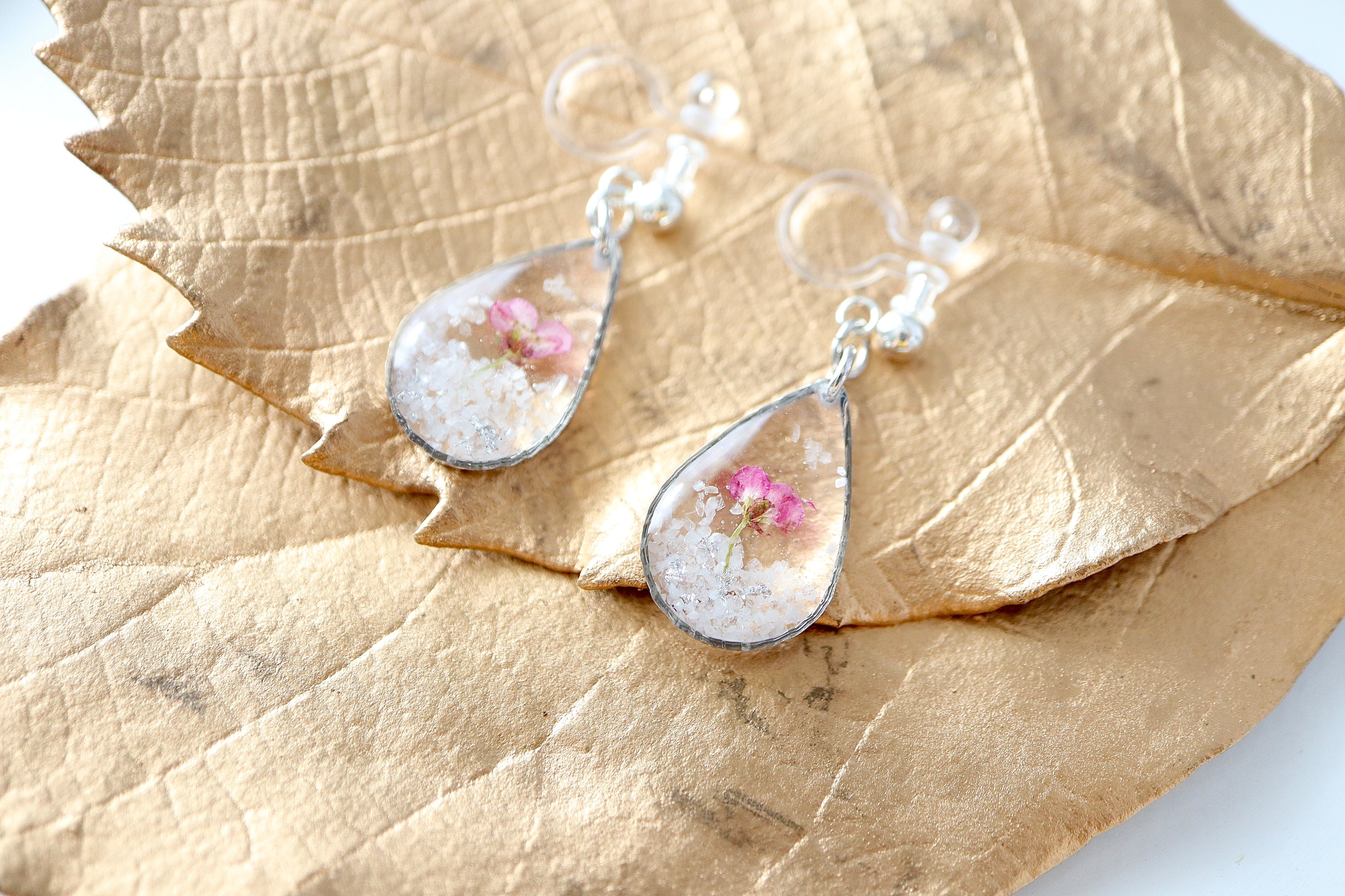 【ピアス/イヤリング】雪の中に咲く一輪の花*雫simple line