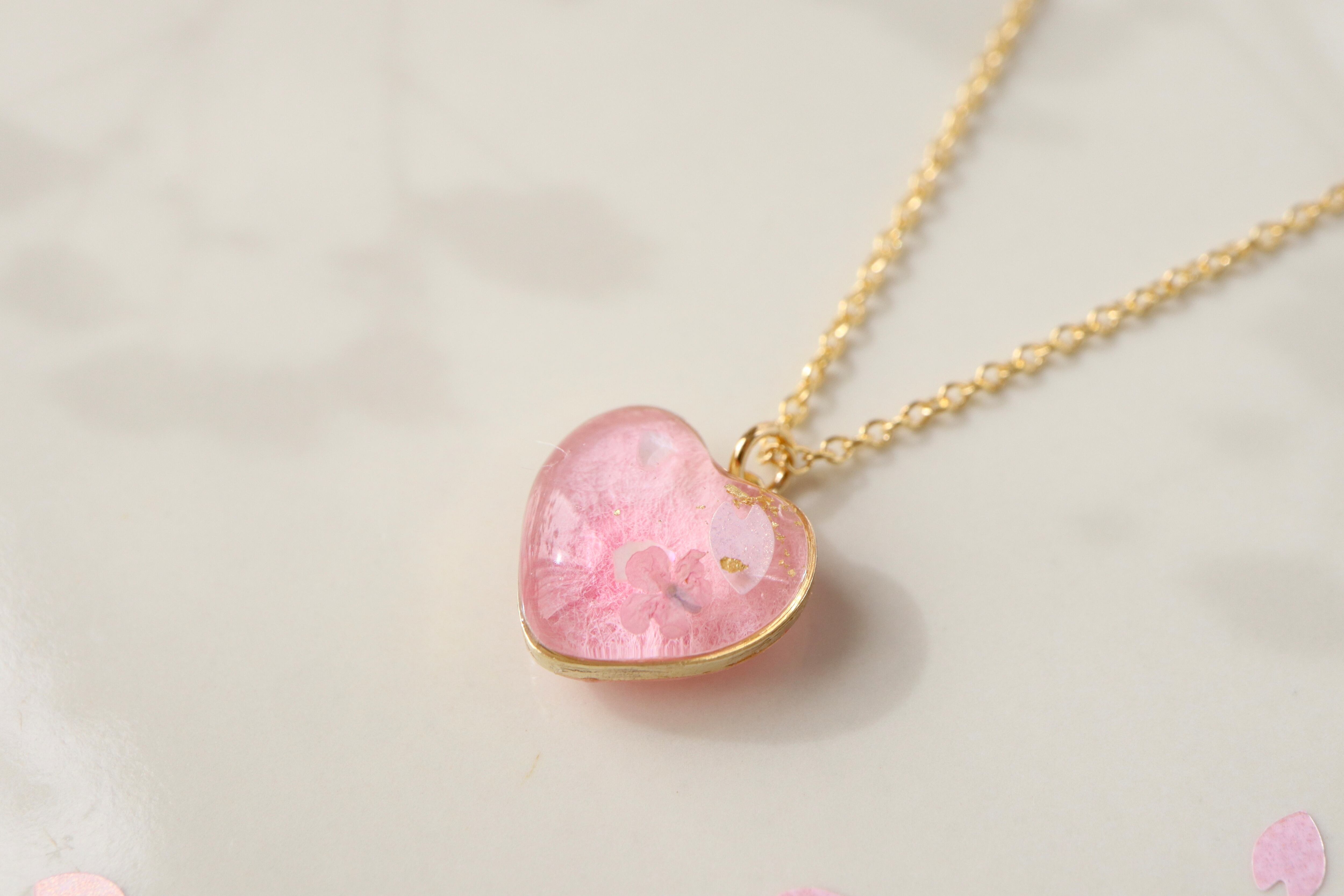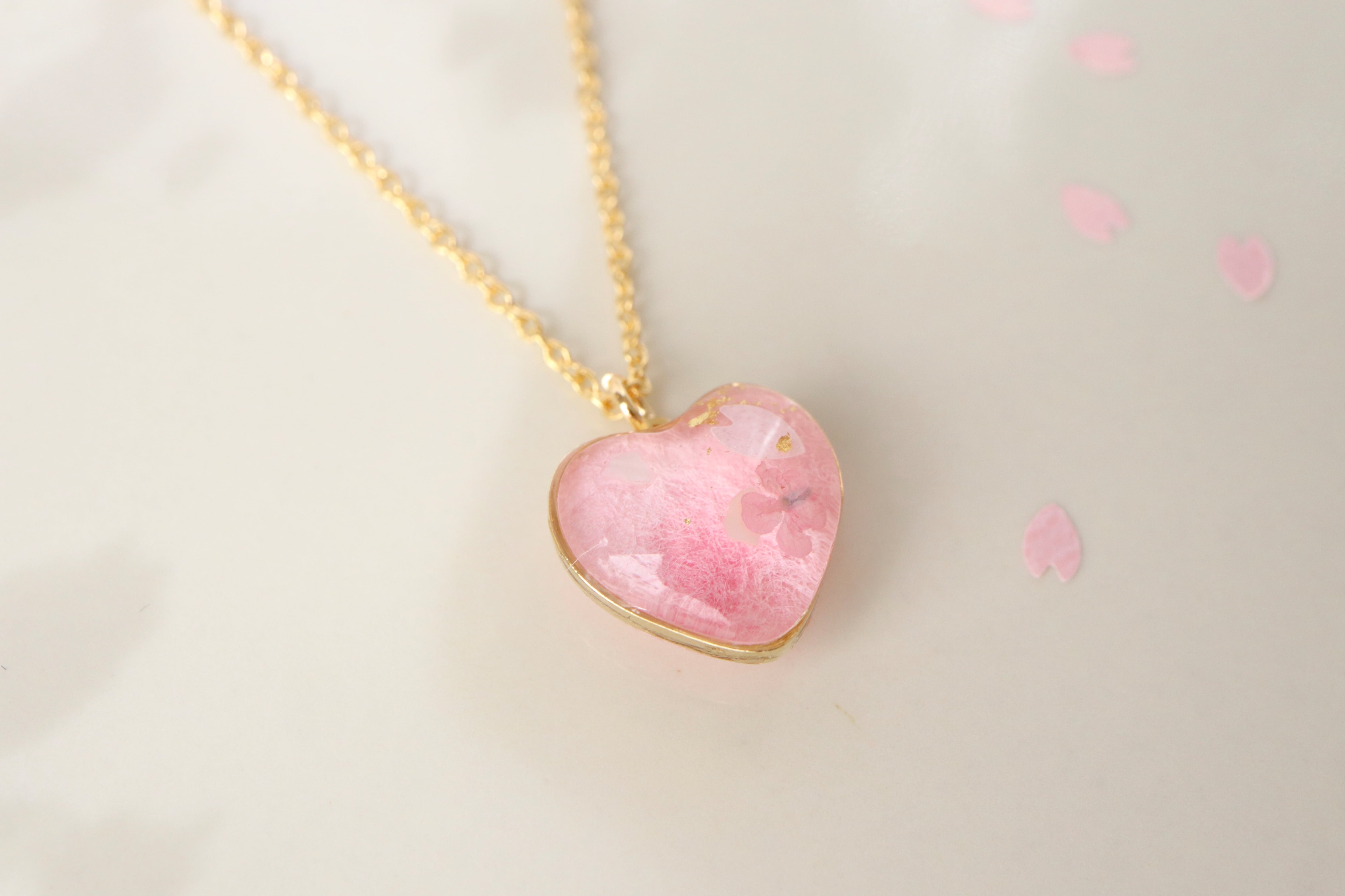 【ネックレス】 1点もの*和紙と水彩の彩り ~桜~