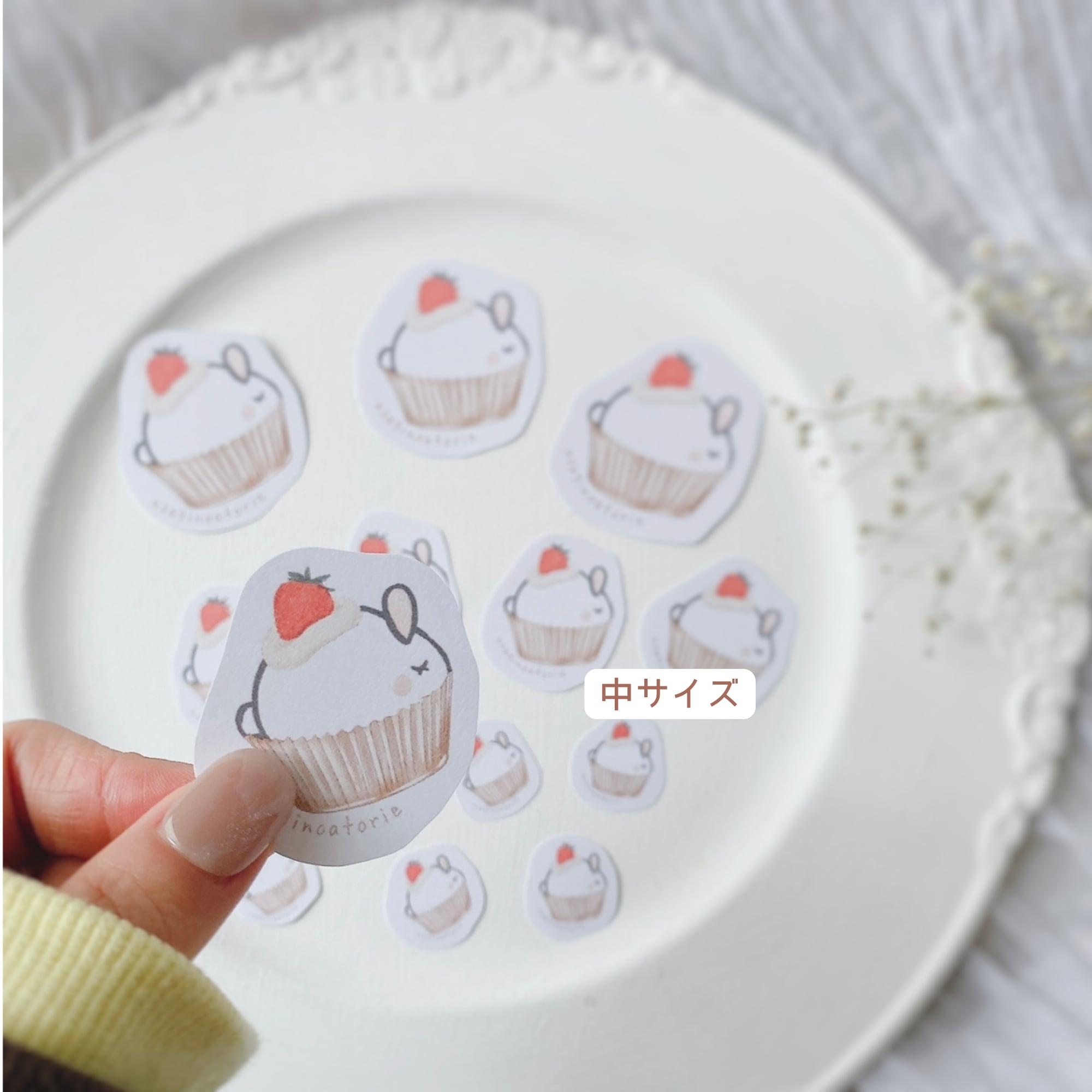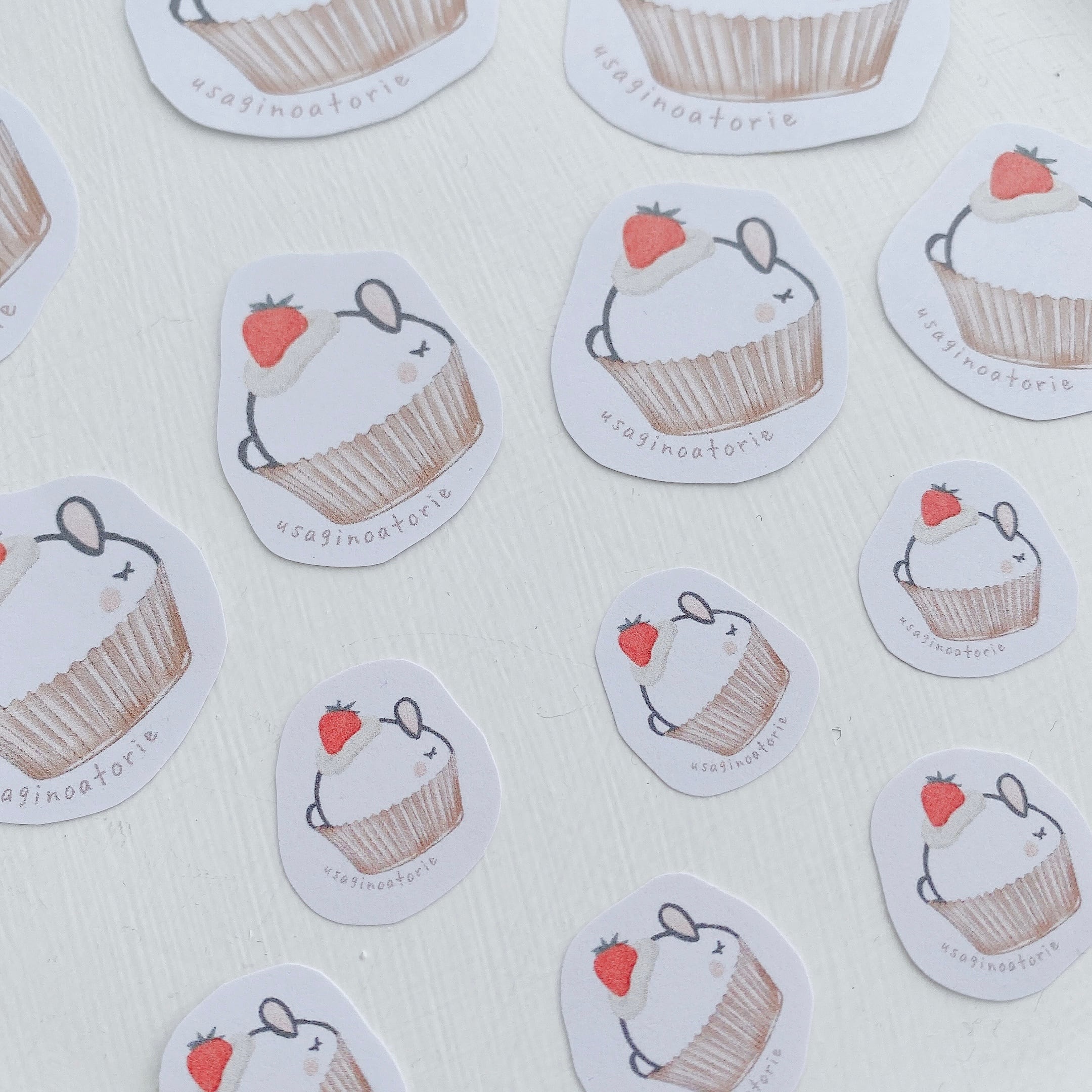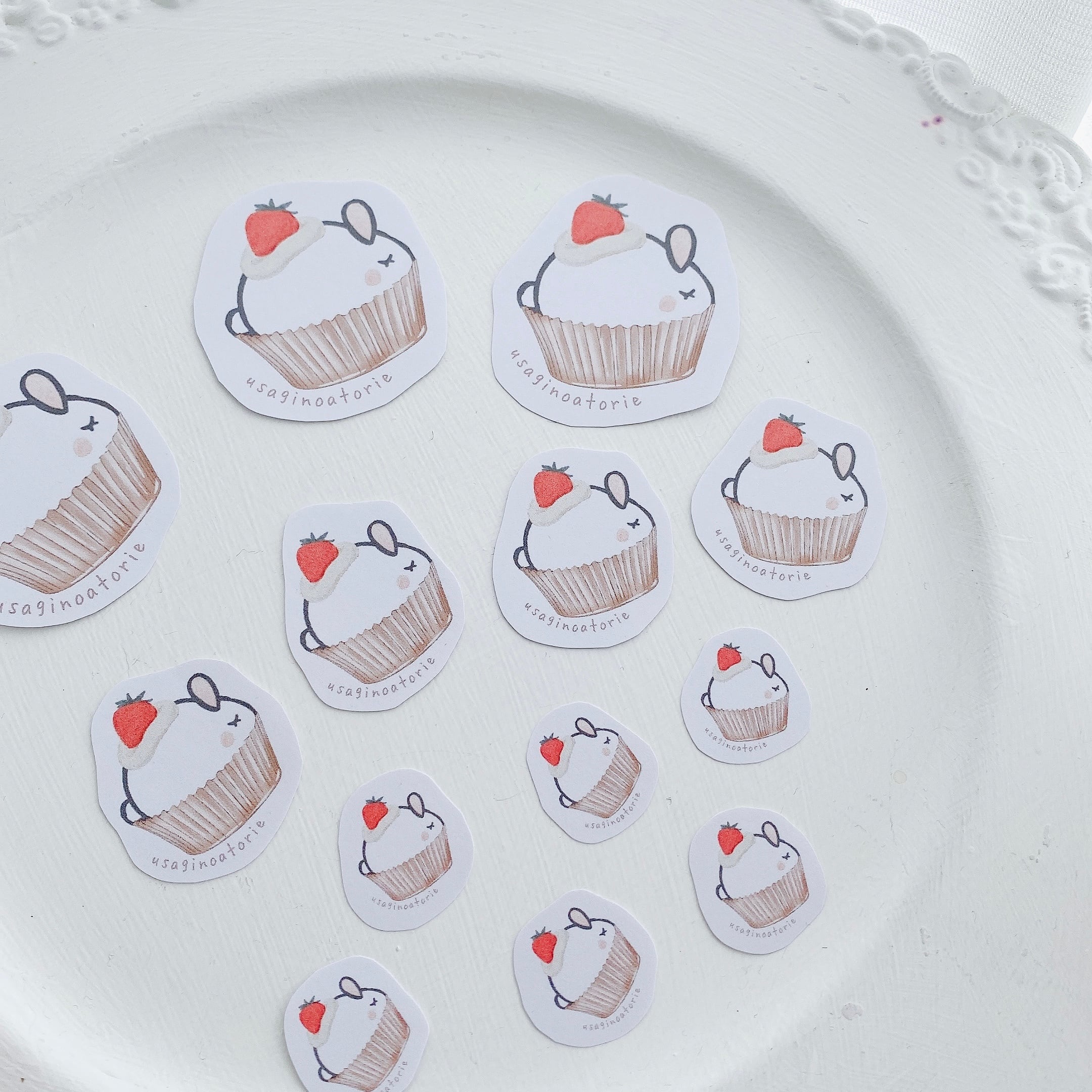 【フレークシール】小・中・大の合計10枚セット☆カップケーキウサギさん