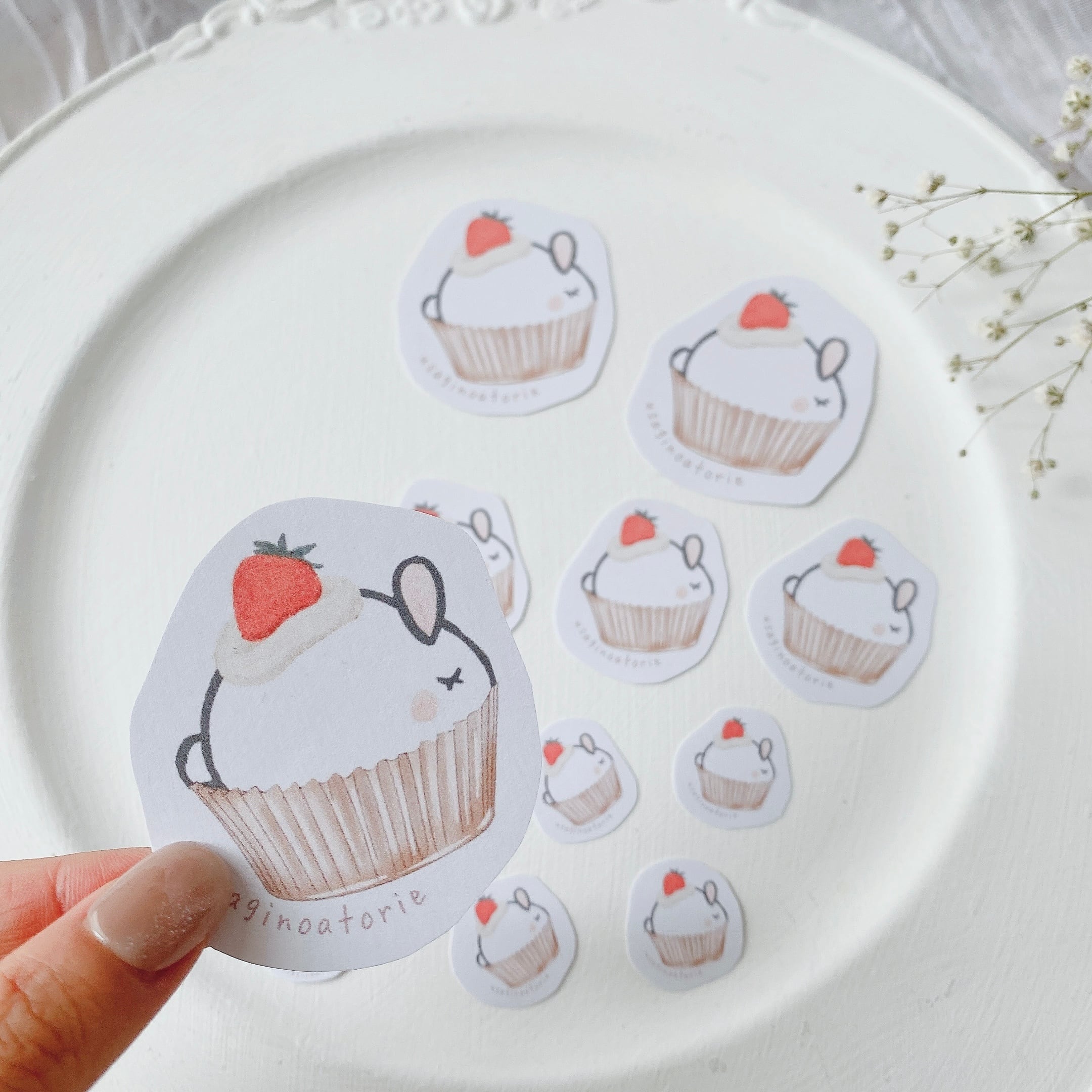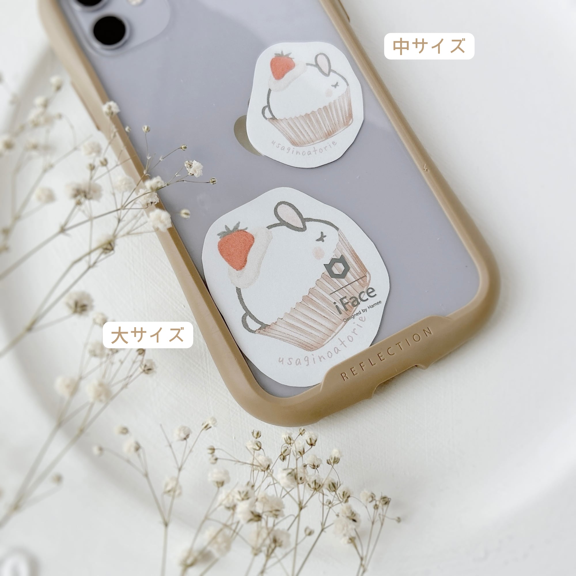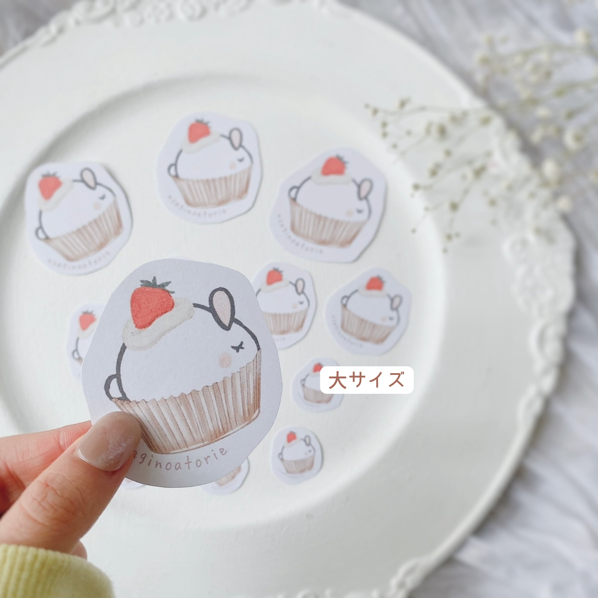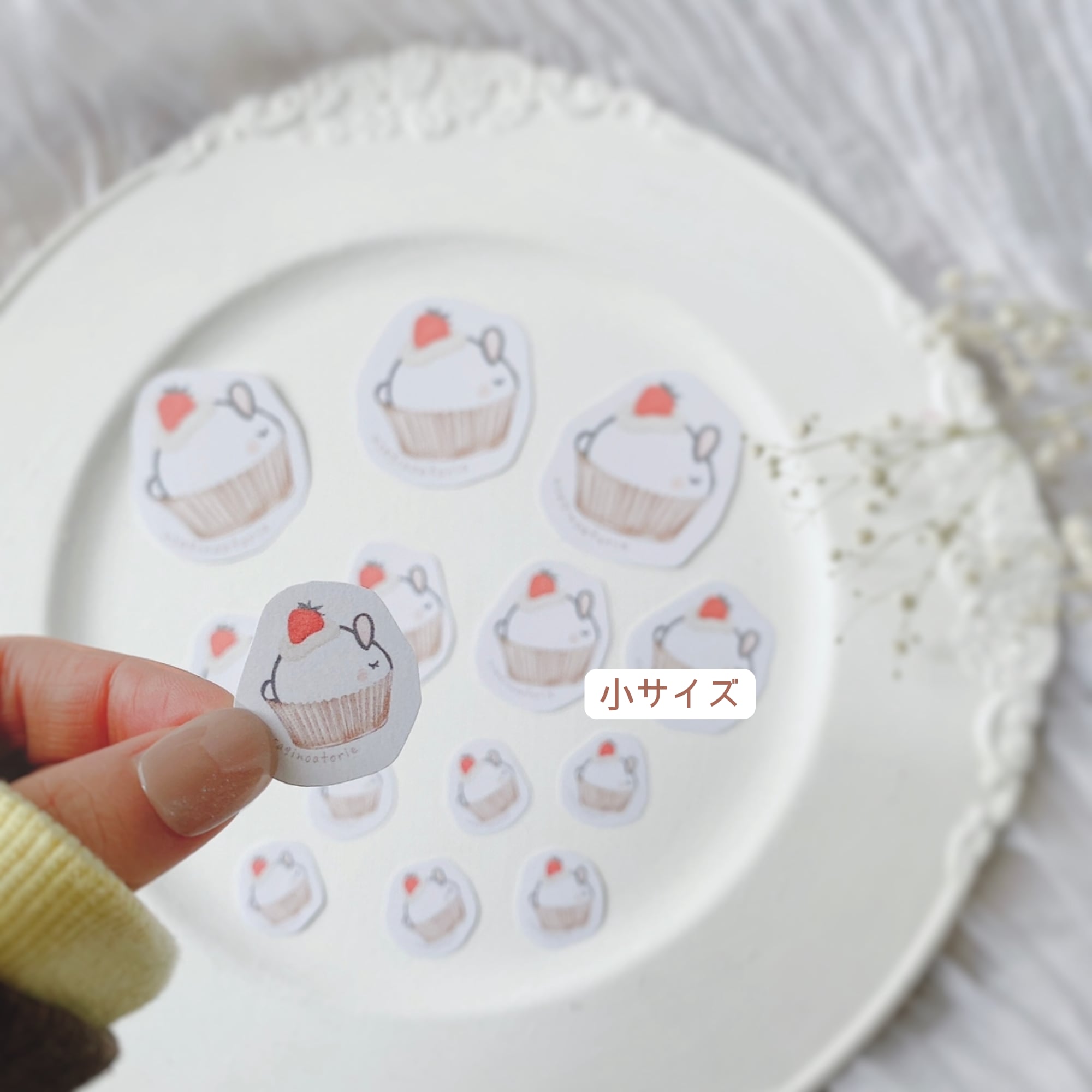 【フレークシール】小・中・大の合計10枚セット☆カップケーキウサギさん