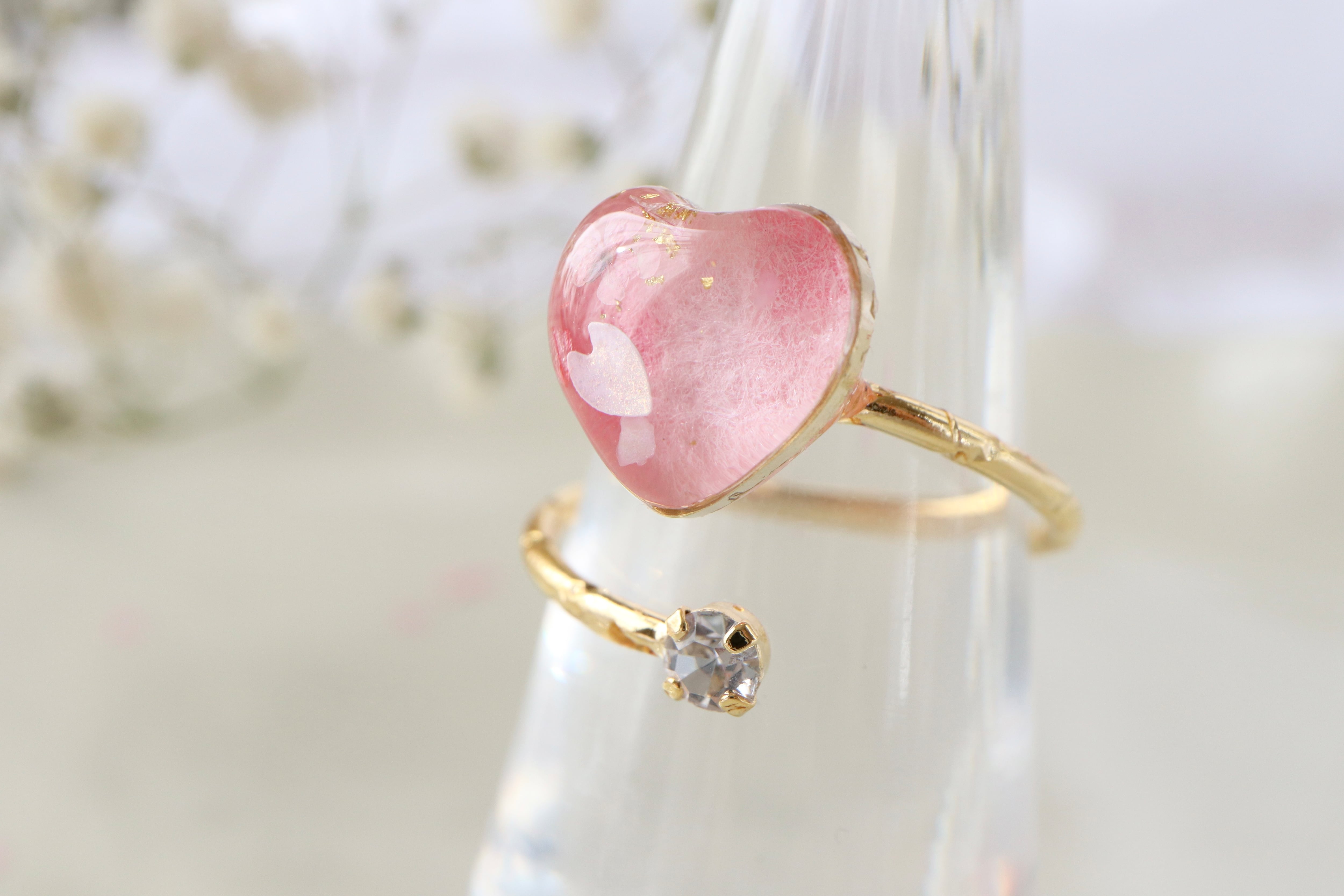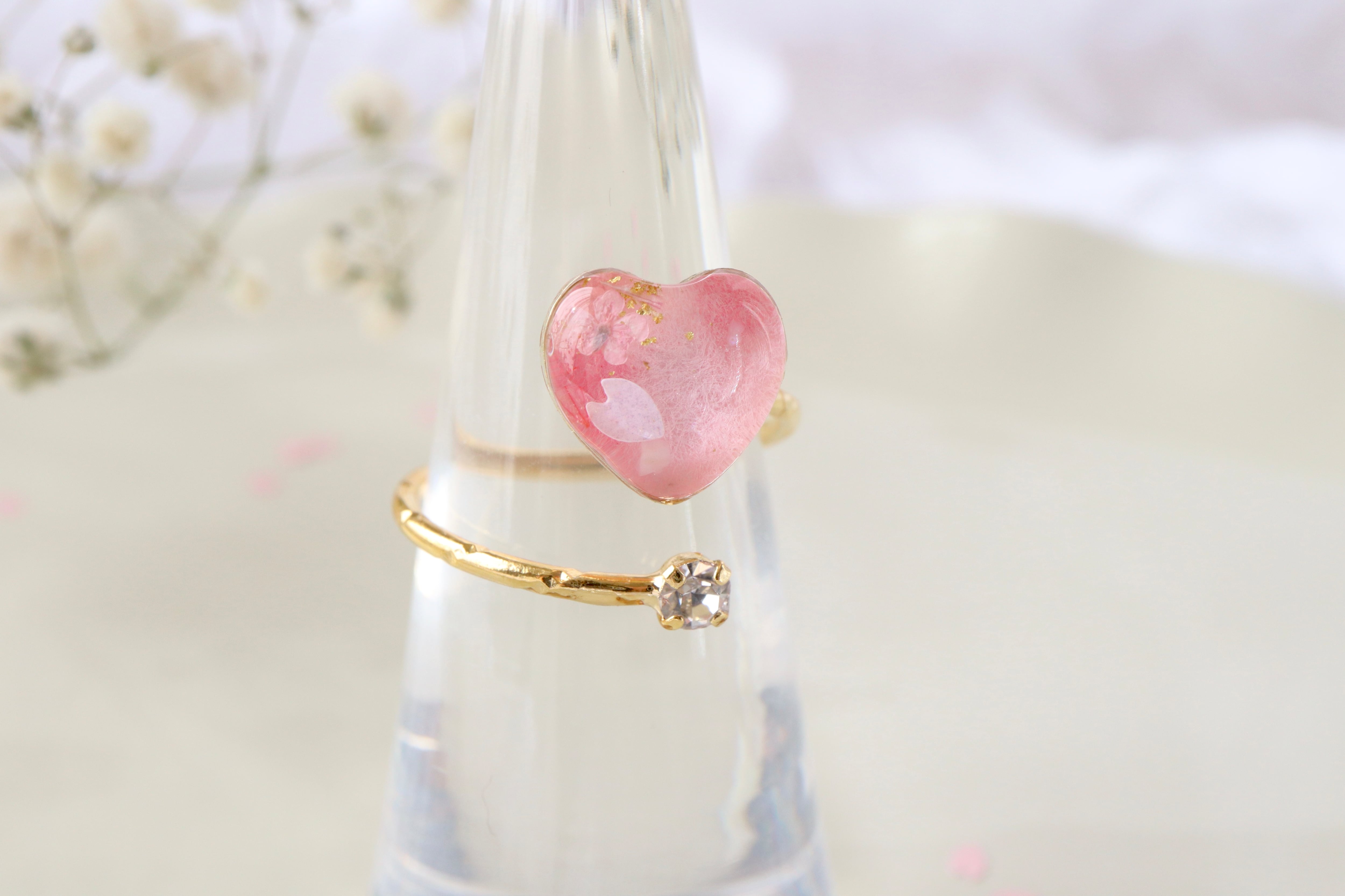 【フリーサイズリング】 1点もの*和紙と水彩の彩り ~桜~