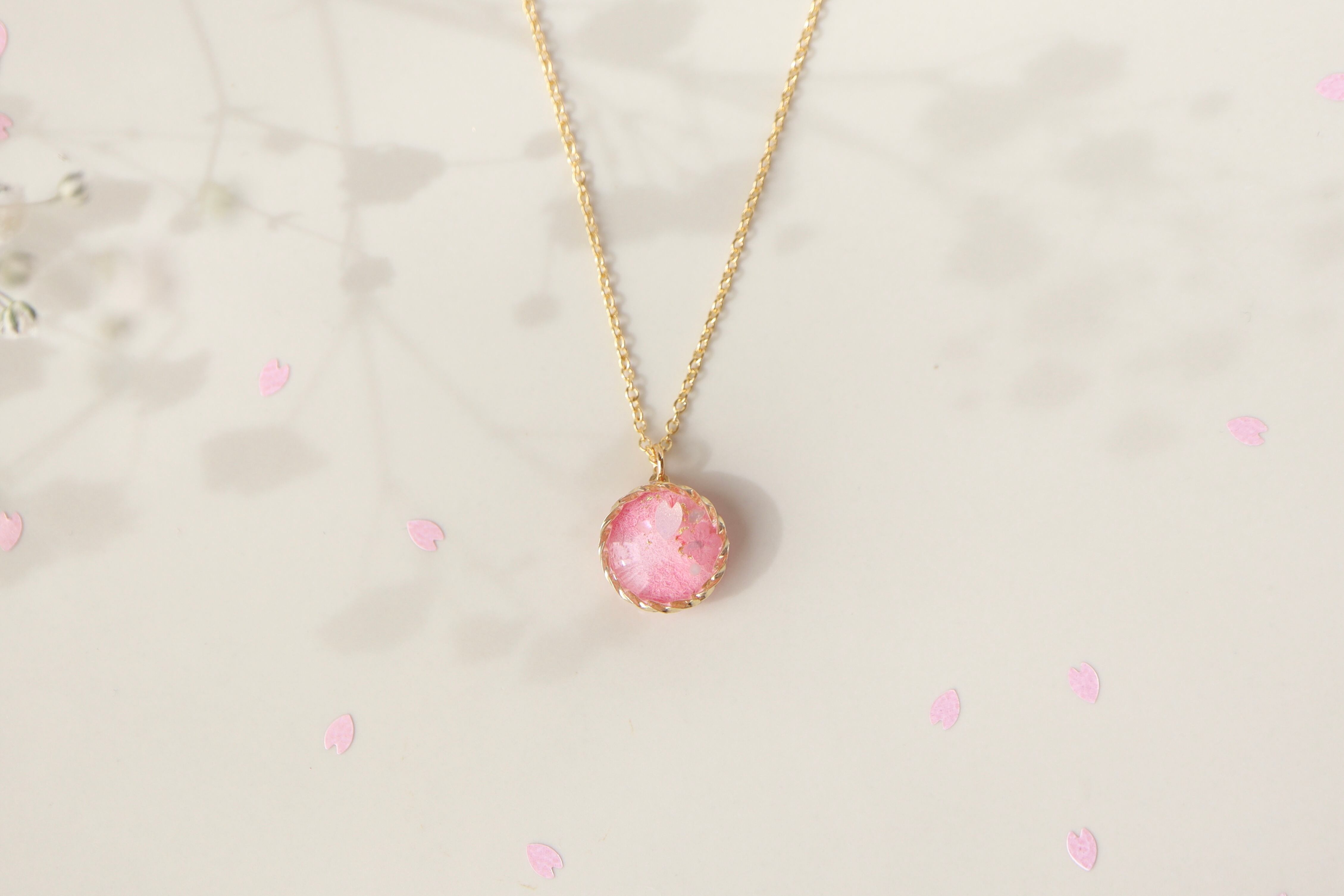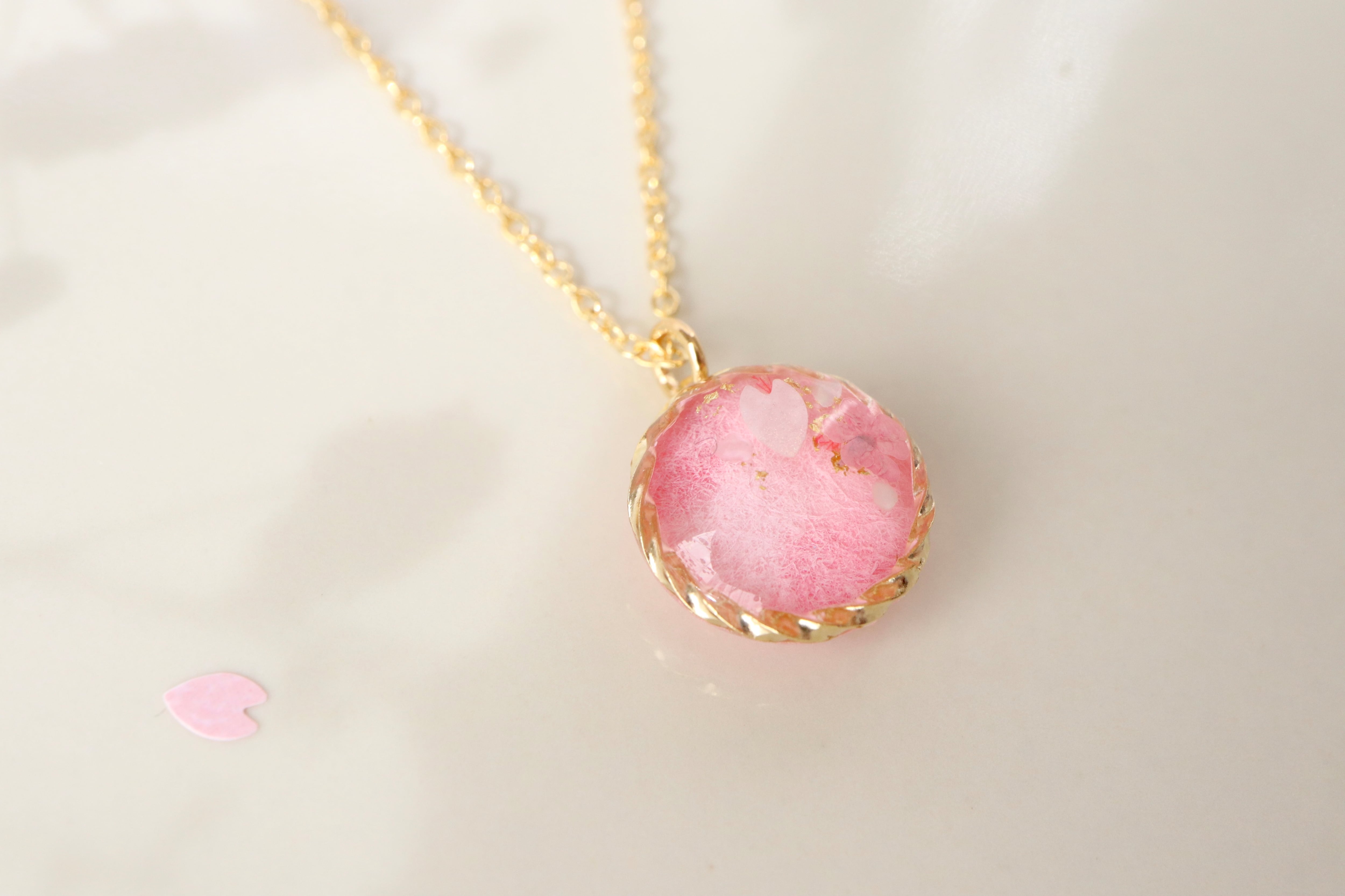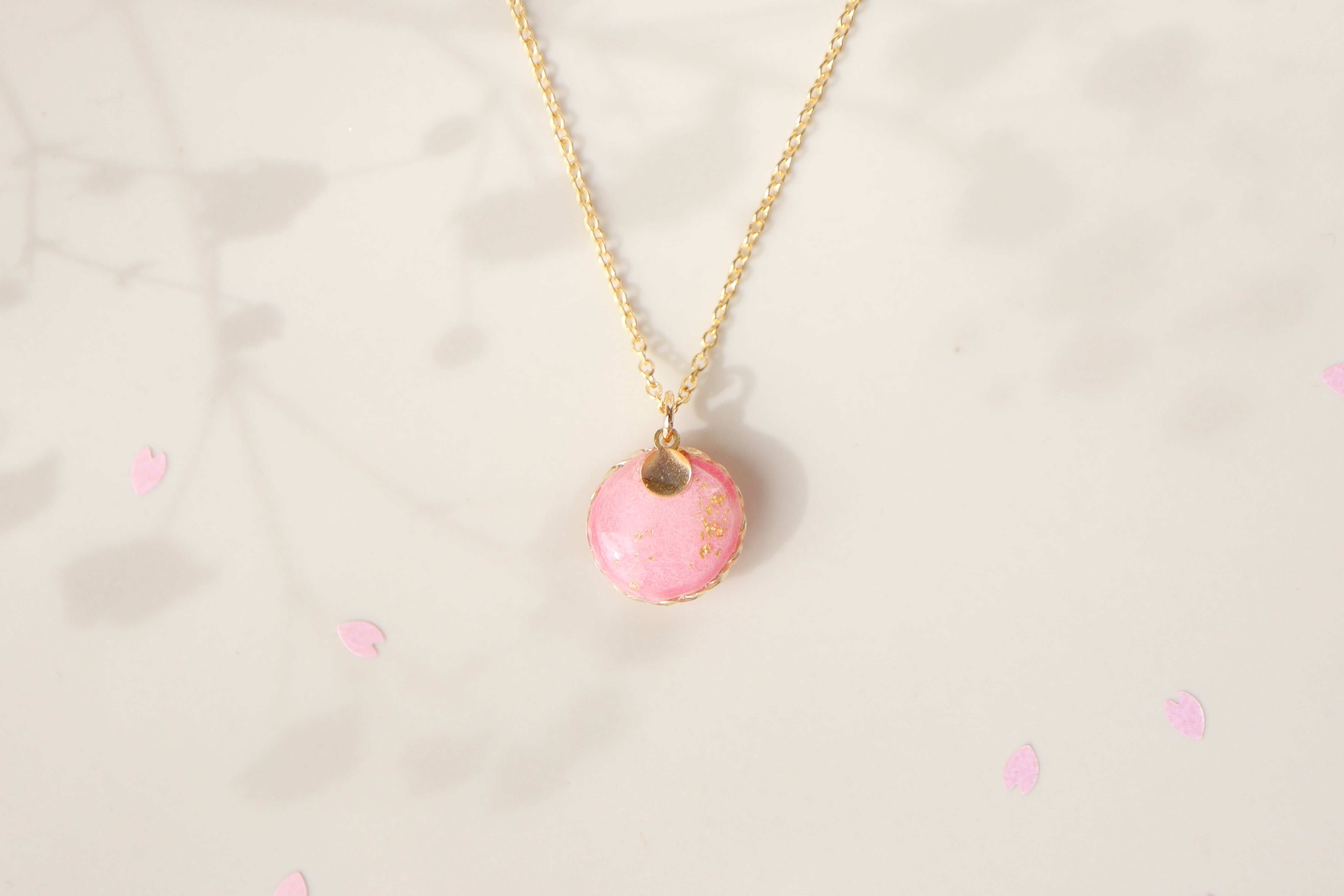【ネックレス】 1点もの*和紙と水彩の彩り ~桜~