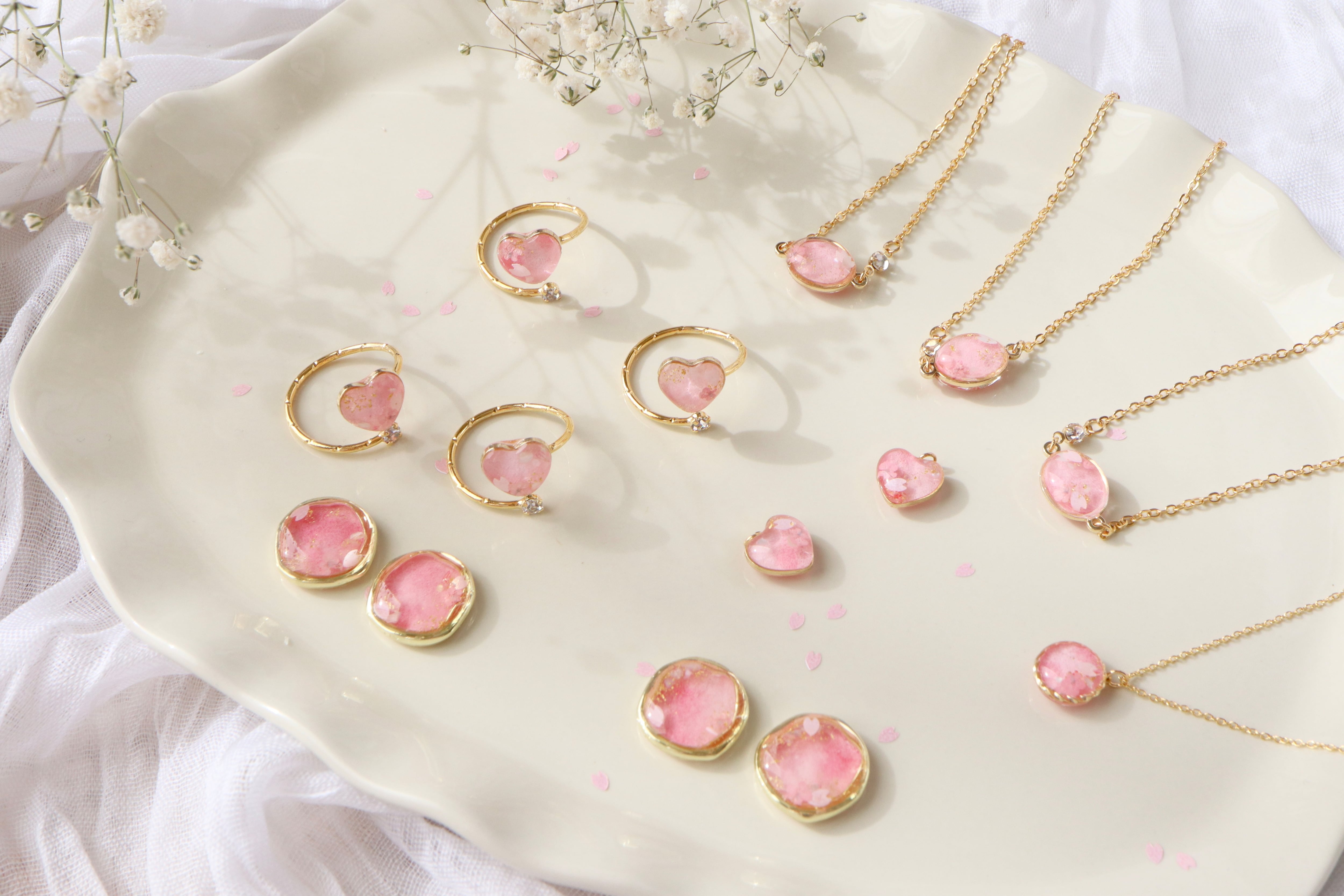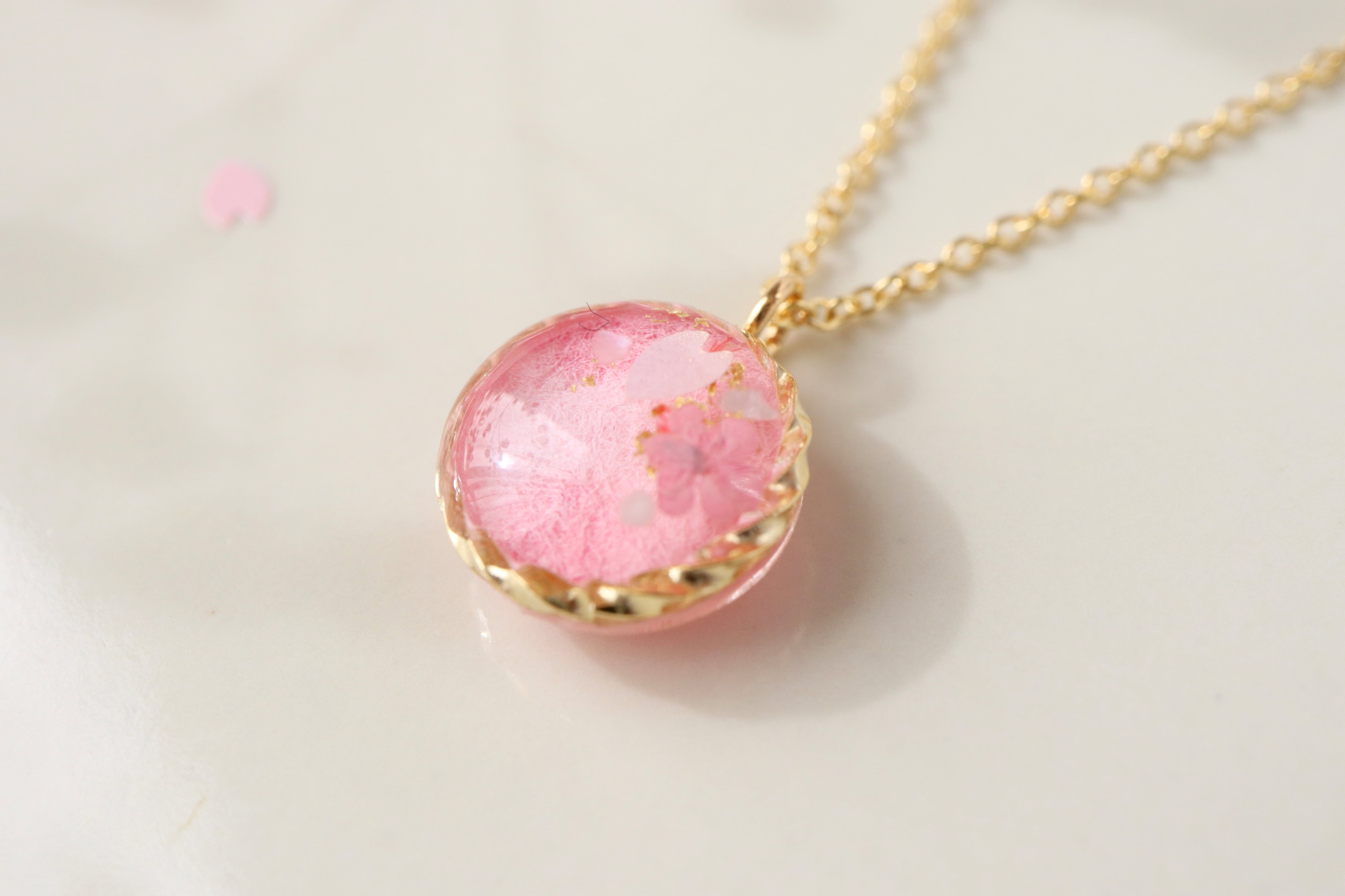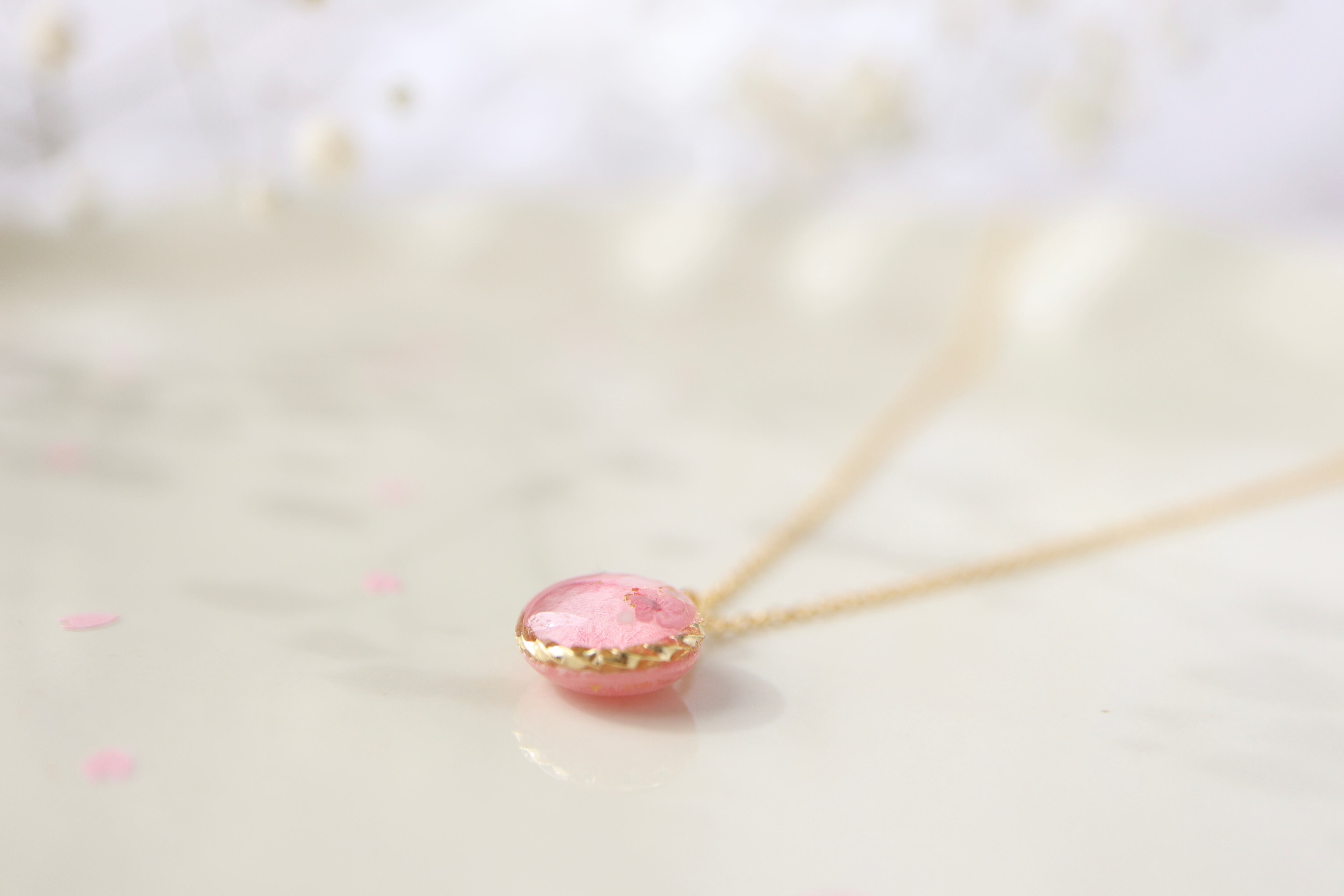 【ネックレス】 1点もの*和紙と水彩の彩り ~桜~