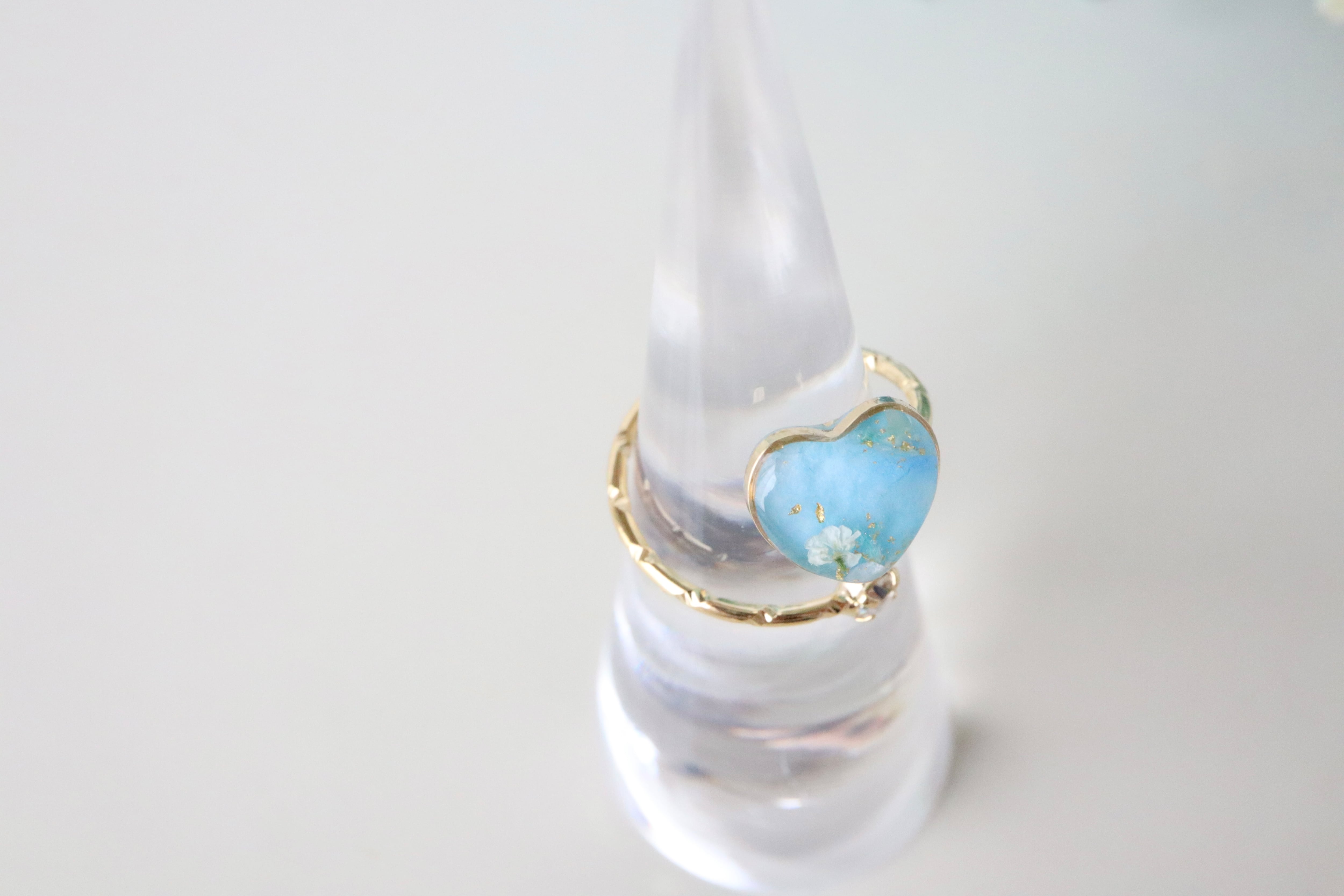【リング03】 1点もの*和紙と水彩の彩り ~ネモフィラ~/フリーサイズ