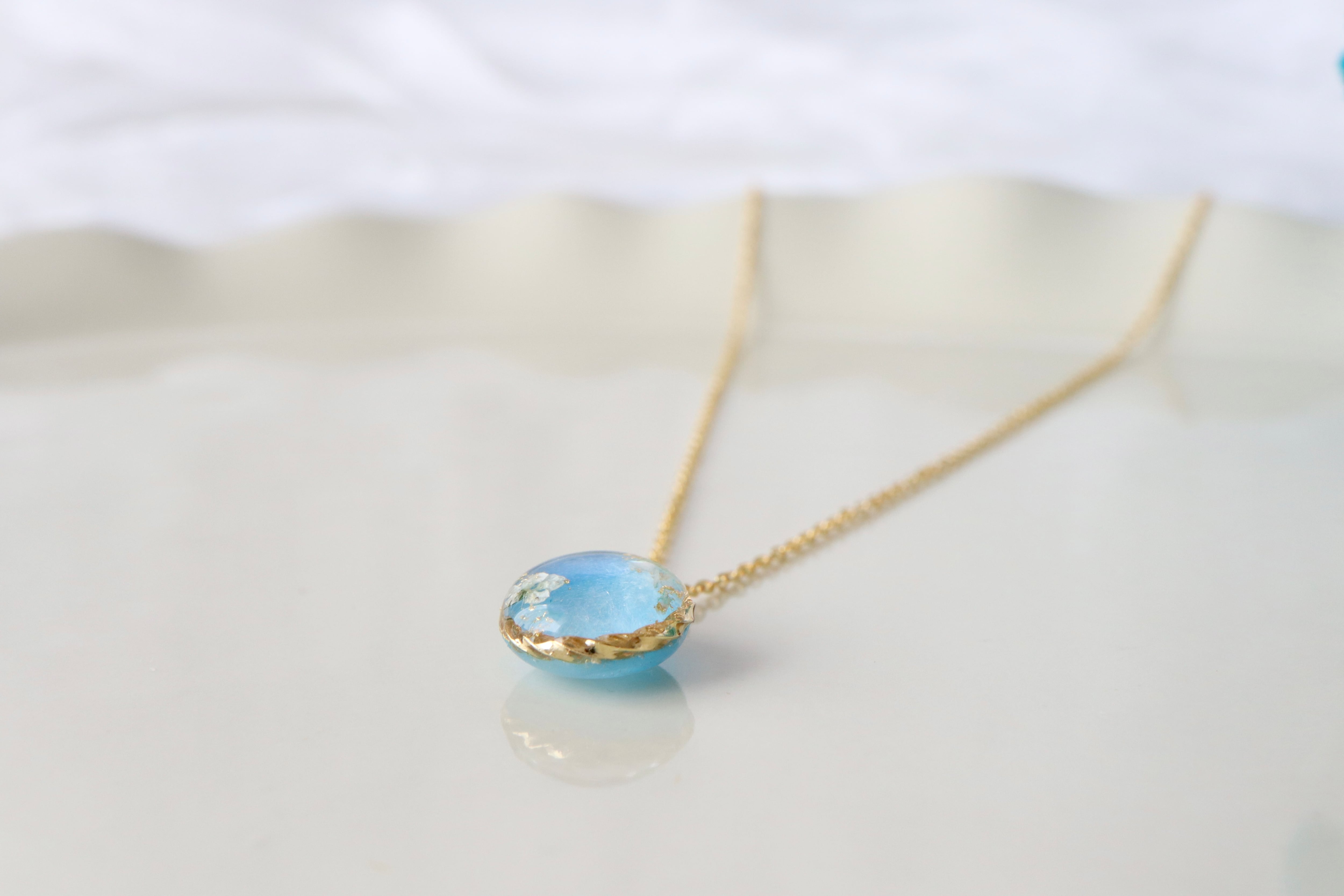 【ネックレス 02】 1点もの*和紙と水彩の彩り ~ネモフィラ~/ゴールド