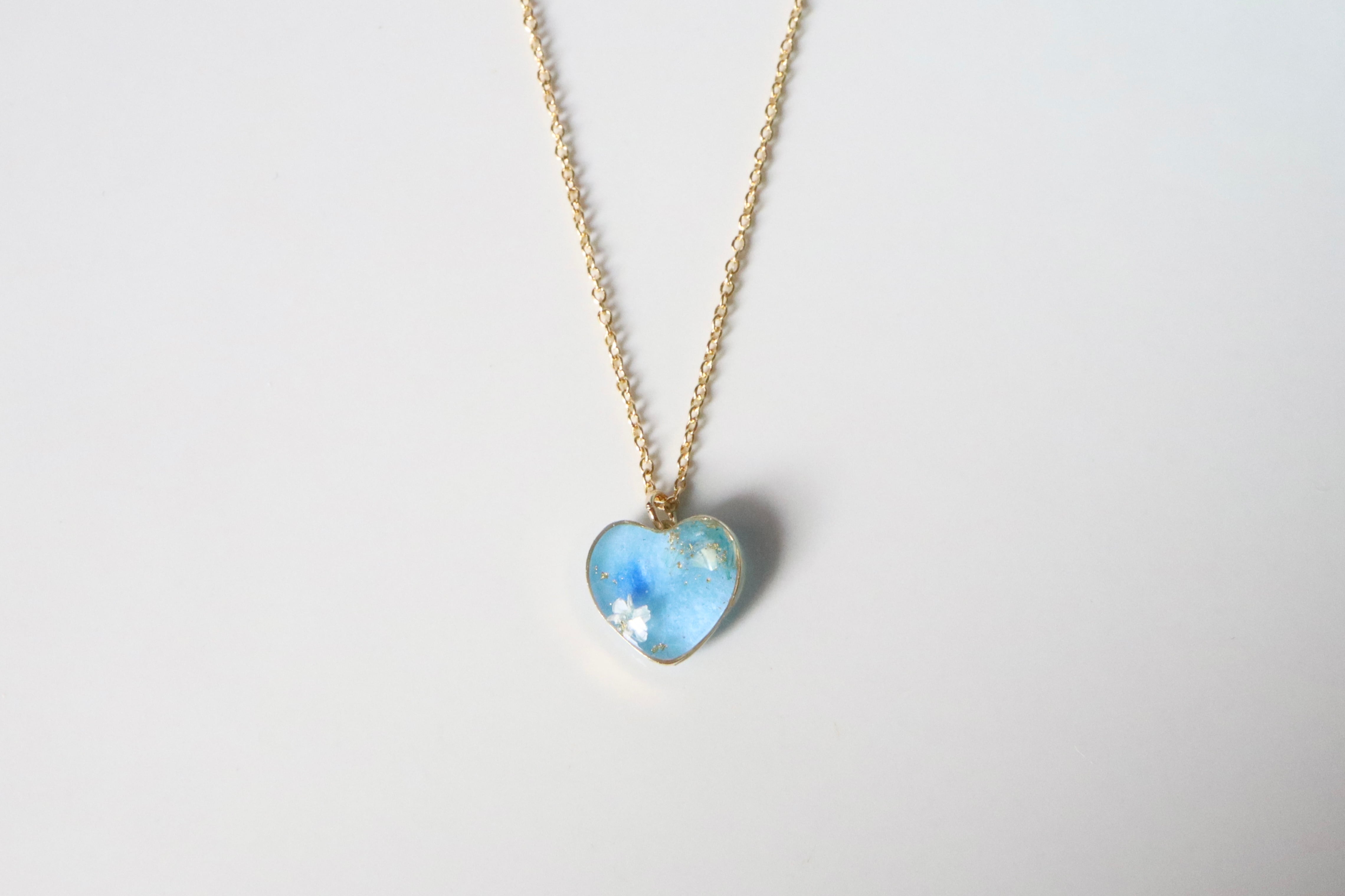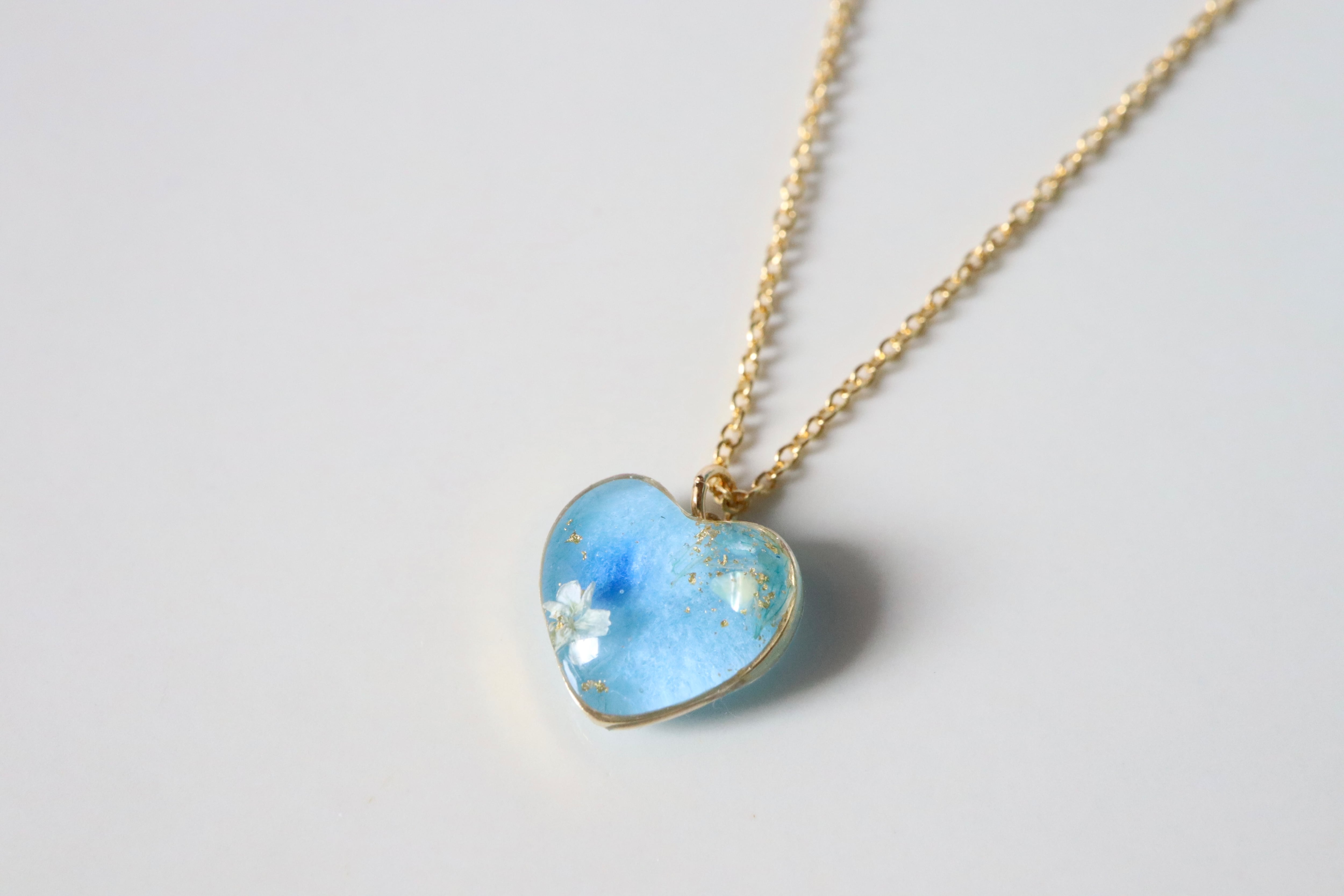 本物のお花や貝殻をとじ込めた、同じものはつくれない一点ものの、小さな青のかけら。