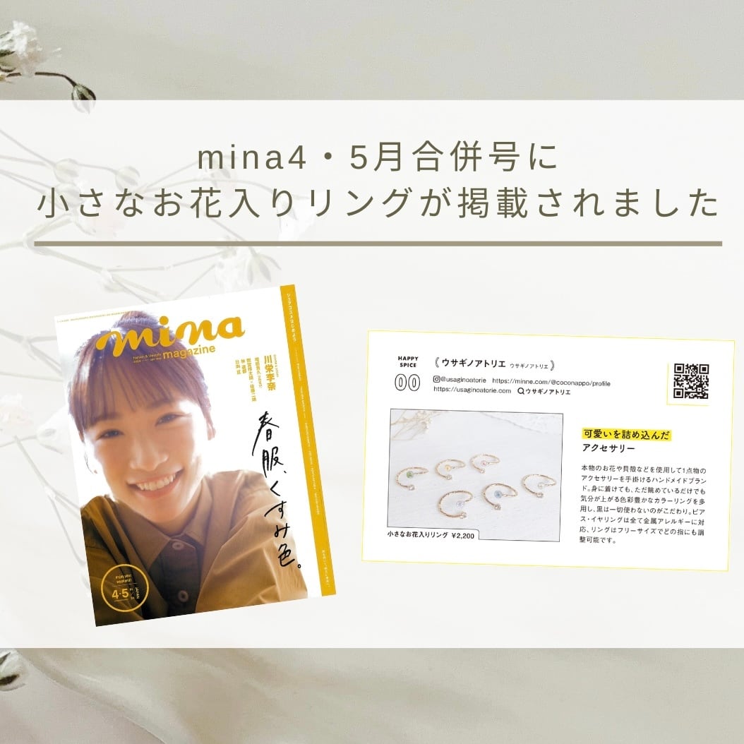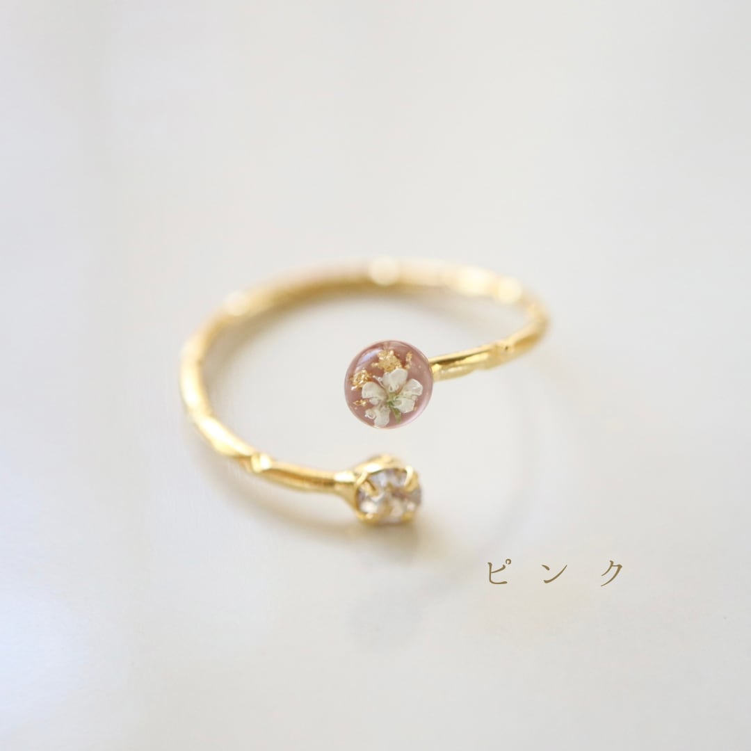 【雑誌掲載】選べるカラー / 小さなお花入りリング / フリーサイズ・ゴールド