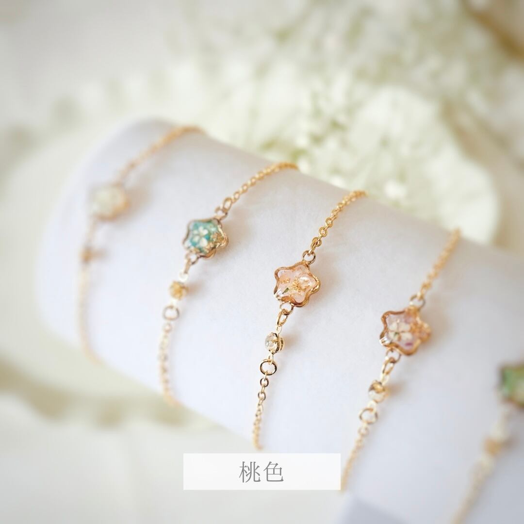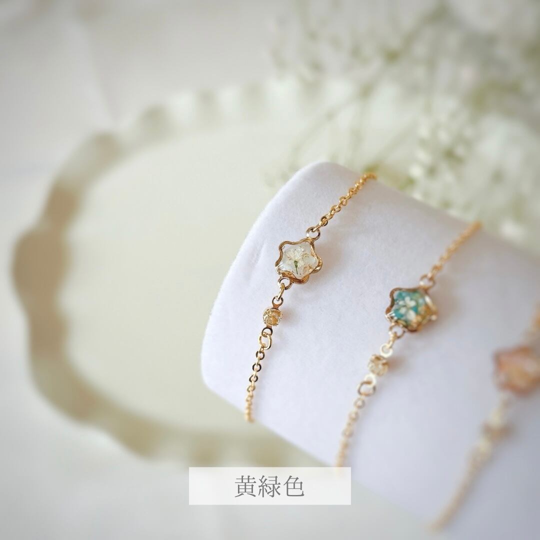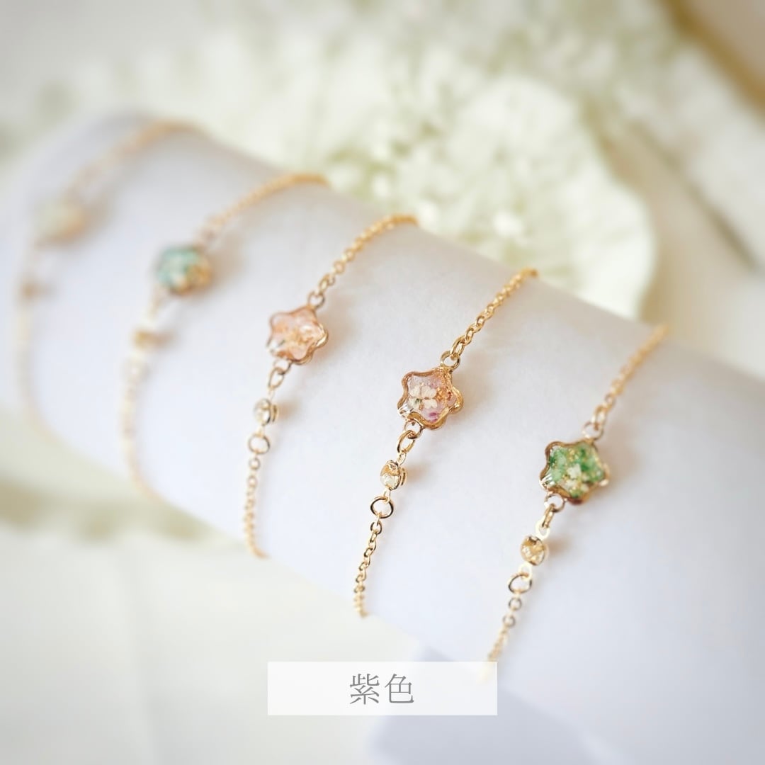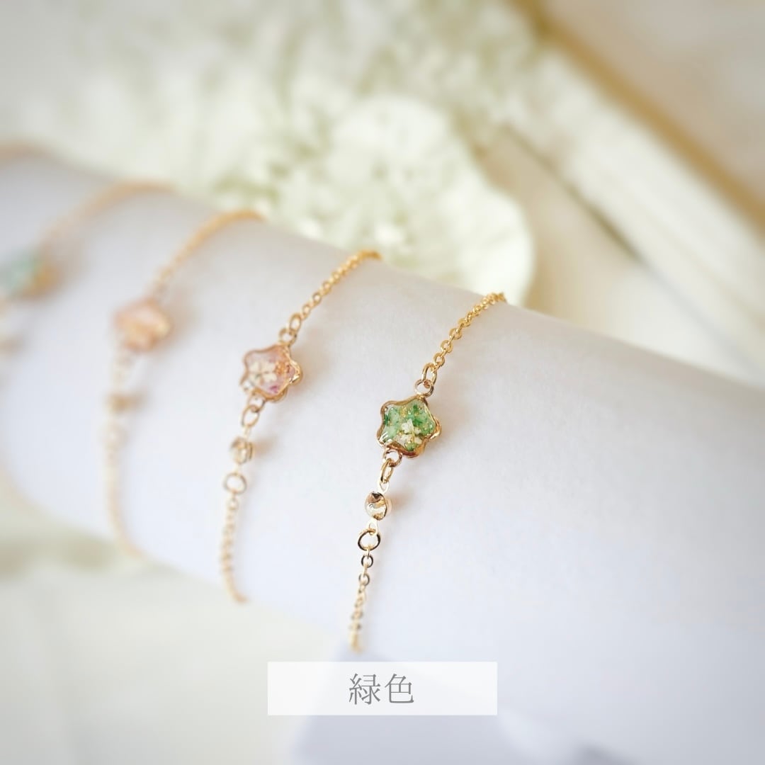 選べるカラー / 色付き貝殻とお花入りブレスレット .* スライド式調節 / ゴールド