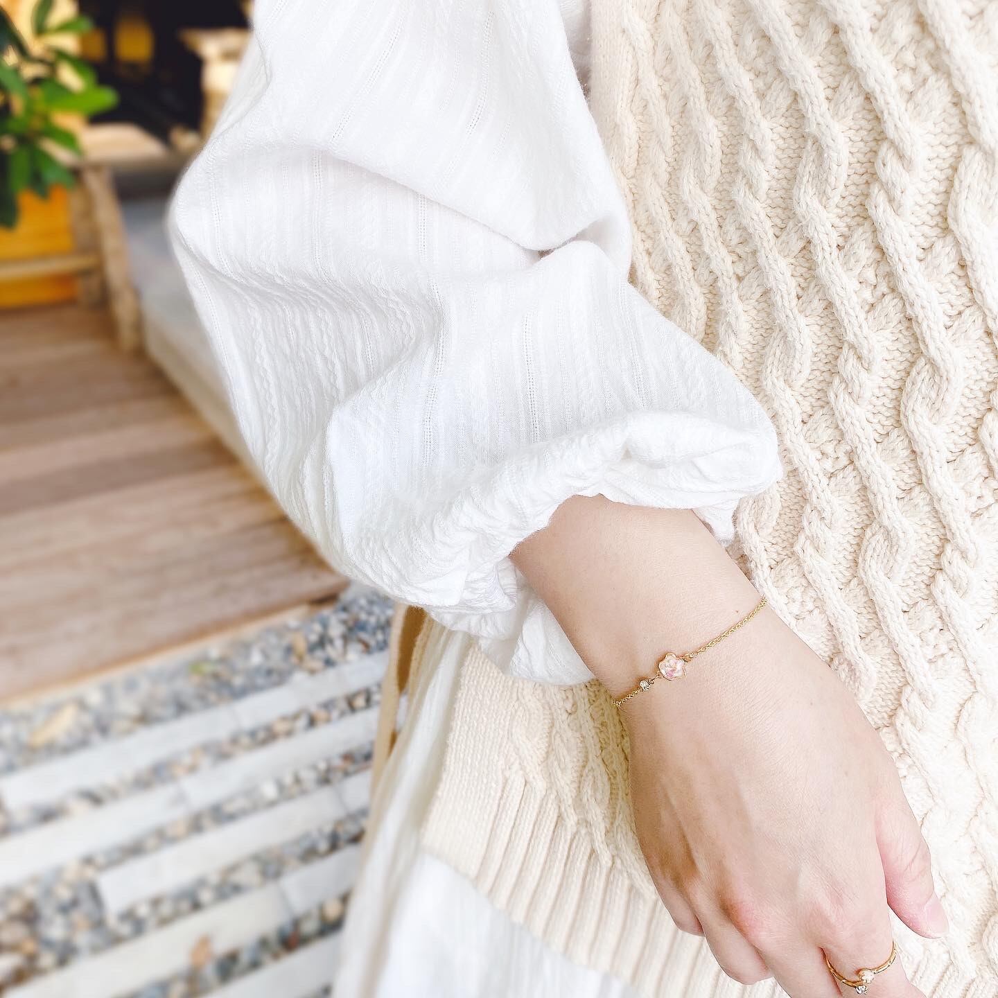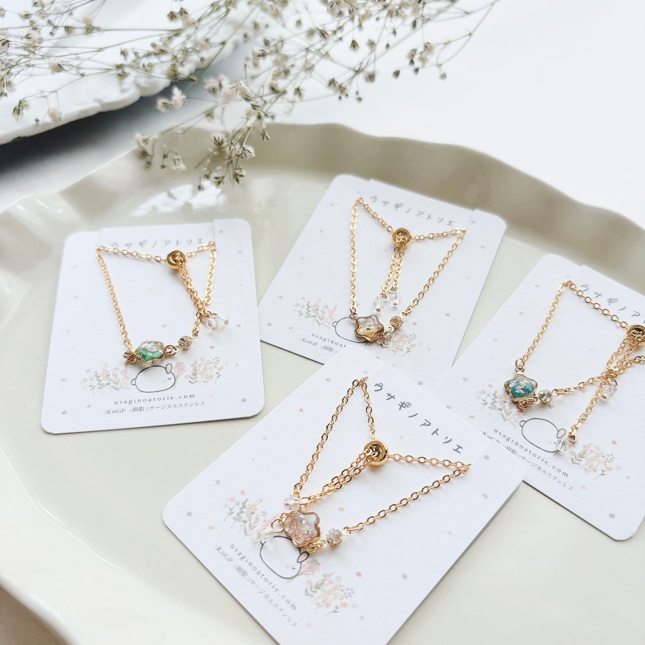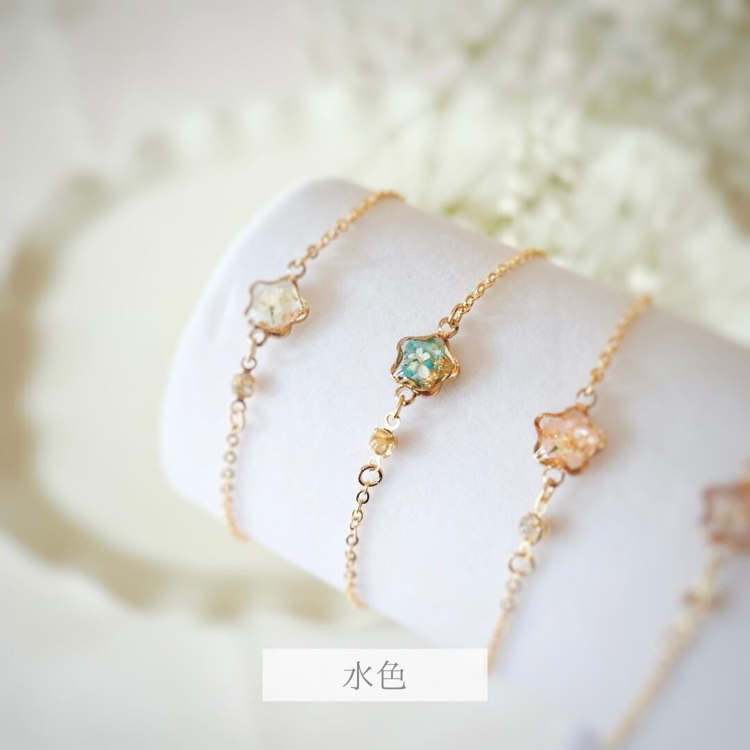 選べるカラー / 色付き貝殻とお花入りブレスレット .* スライド式調節 / ゴールド