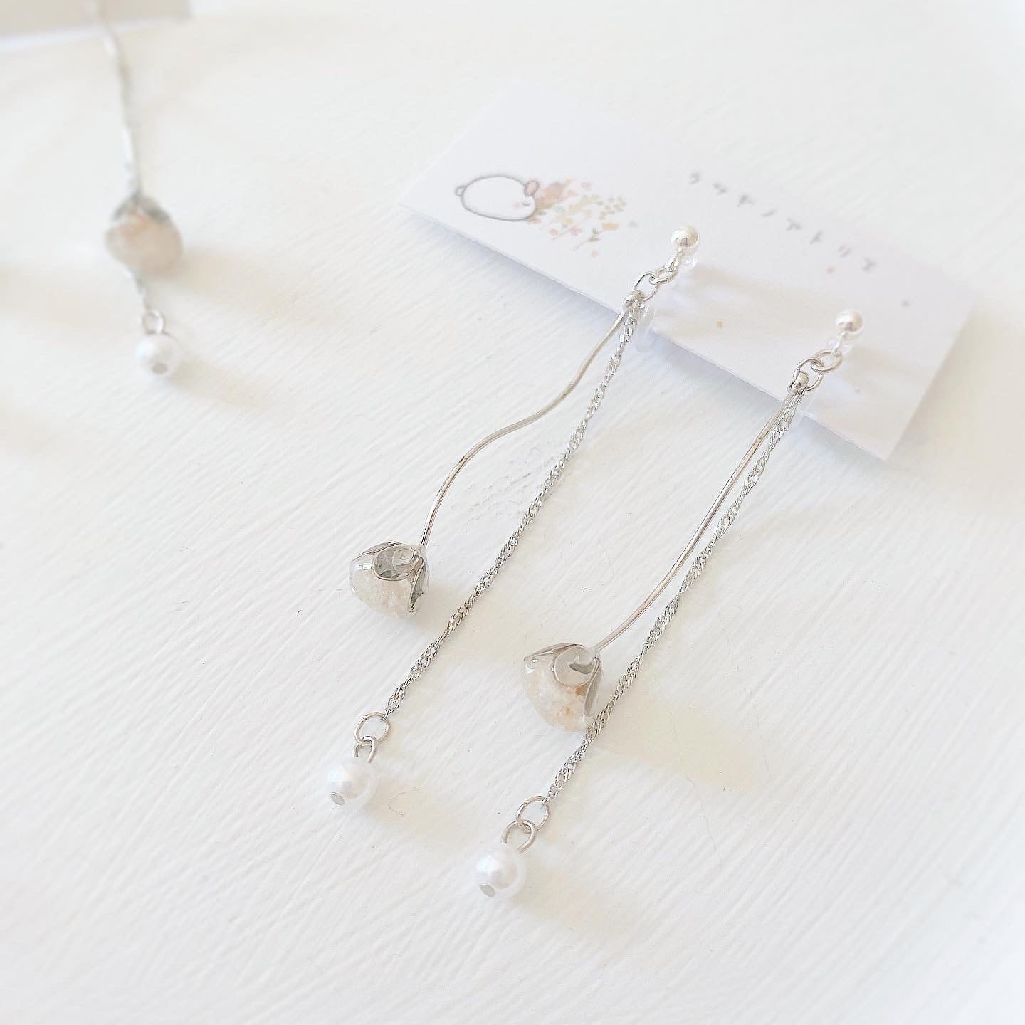 本物のかすみそうのお花がゆれる耳飾り.゚